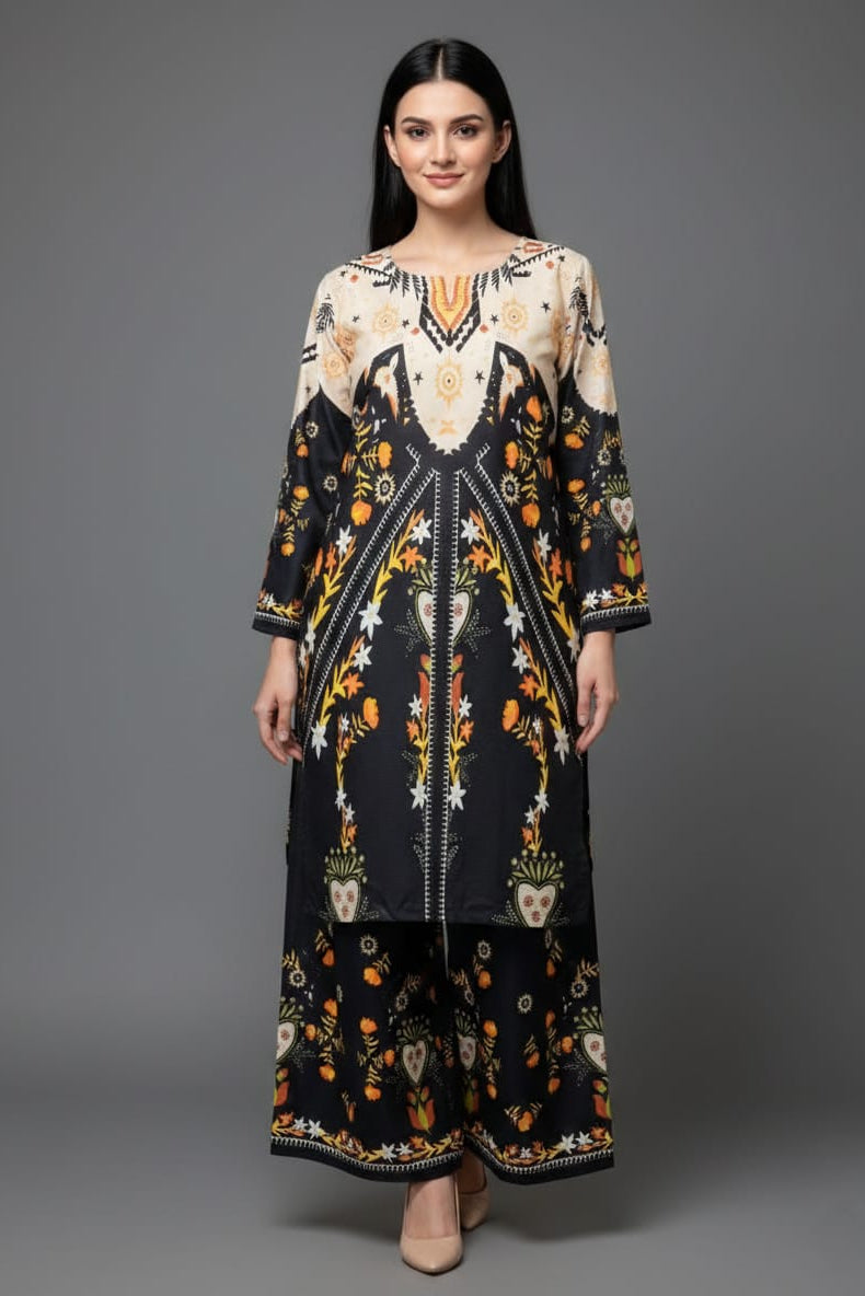 Stunning 2 Pc Fusion Set crafted from luxurious Korean crepe silk. This versatile ensemble glides from Home, office to evening with effortless grace, flattering every silhouette while keeping you comfortable all day long. Premium quality meets everyday wearability—your new go-to piece.
