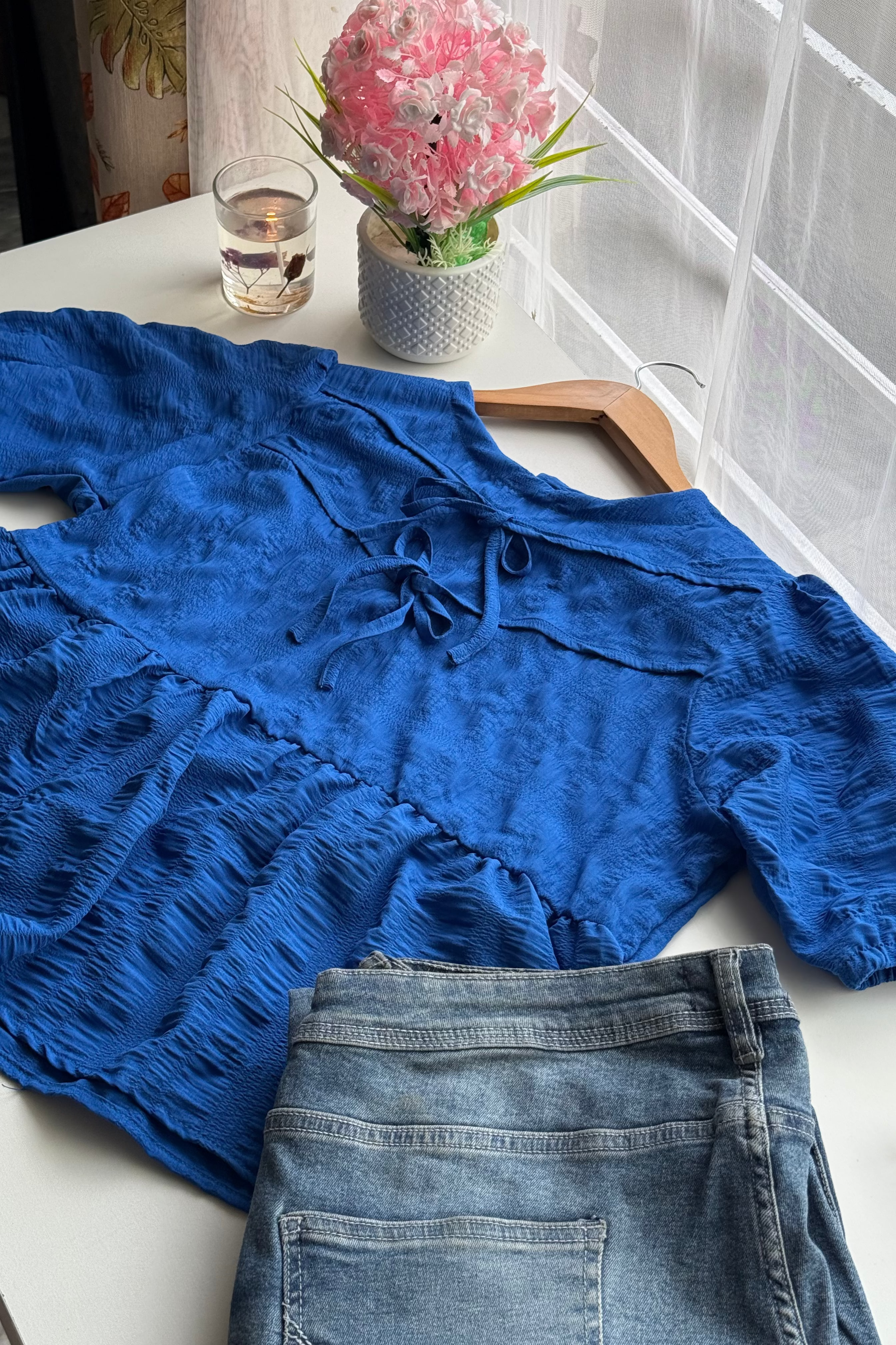 Elevate your everyday style with this chic blouse featuring dramatic puff sleeves and a statement front bow. Designed with a flattering peplum silhouette, it cinches at the waist and flows out gracefully for a feminine touch. Perfect for brunches, work days, or dinner dates, this versatile piece pairs beautifully with jeans, skirts, or tailored pants.