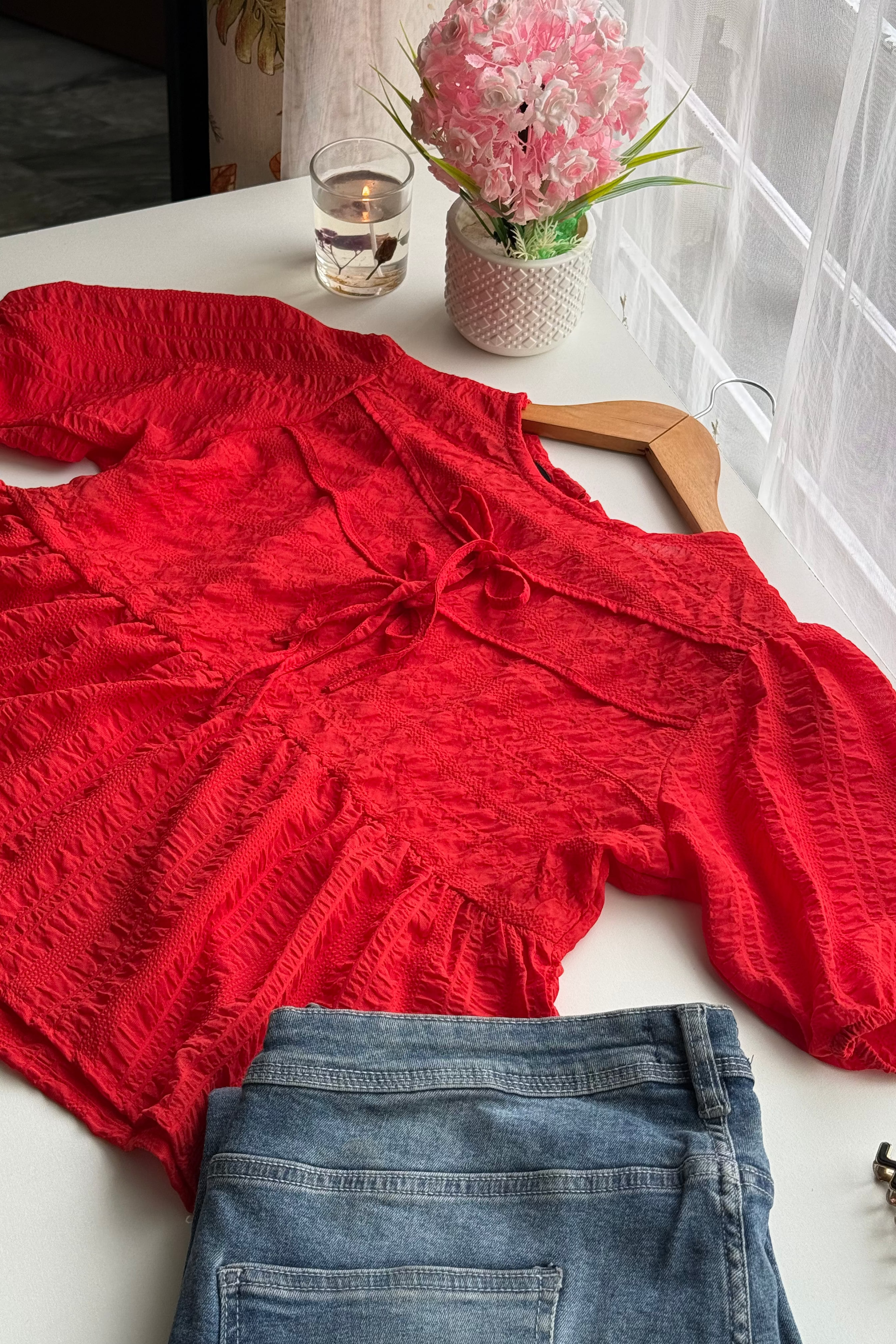 Elevate your everyday style with this chic blouse featuring dramatic puff sleeves and a statement front bow. Designed with a flattering peplum silhouette, it cinches at the waist and flows out gracefully for a feminine touch. Perfect for brunches, work days, or dinner dates, this versatile piece pairs beautifully with jeans, skirts, or tailored pants.